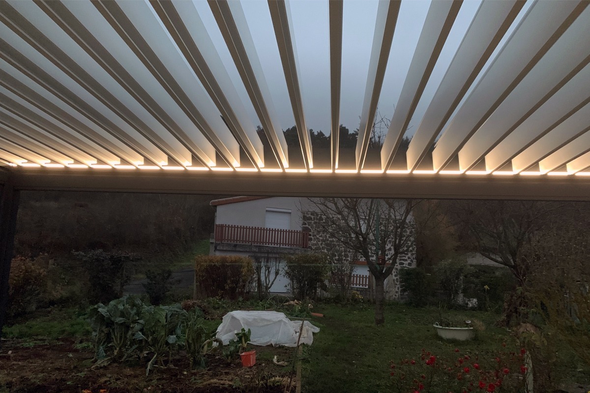 Pour apprécier au maximum votre “pièce” en plus, n’hésitez pas à la décorer comme telle ! Le mobilier d’extérieur et les coussins seront à l’abri des intempéries grâce aux lames orientables : vous pouvez en abuser ! Vous pouvez également remplacer ou compléter l’éclairage en option de guirlandes lumineuses pour un effet chaleureux et festif. Grâce à votre pergola adossée, vous pourrez ainsi bénéficier de votre extérieur jusque tard dans la soirée.