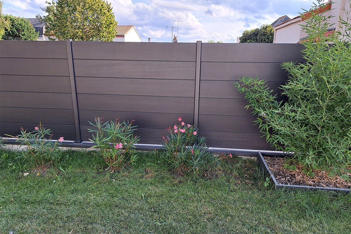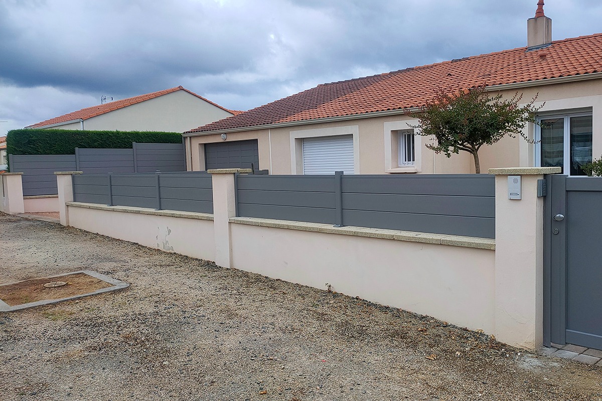 En façade, la clôture Helvetica excelle pour hiérarchiser les séquences : un motif vertical en entrée pour créer une signature, une bande horizontale sur les panneaux centraux pour allonger visuellement la parcelle, puis retour au plein près des zones plus exposées. Cette grammaire autorise des jeux d’ombres et lumières qui évoluent au fil de la journée. Pour la pose, la logique modulaire simplifie les raccords, même en présence d’un muret ou d’une pente.