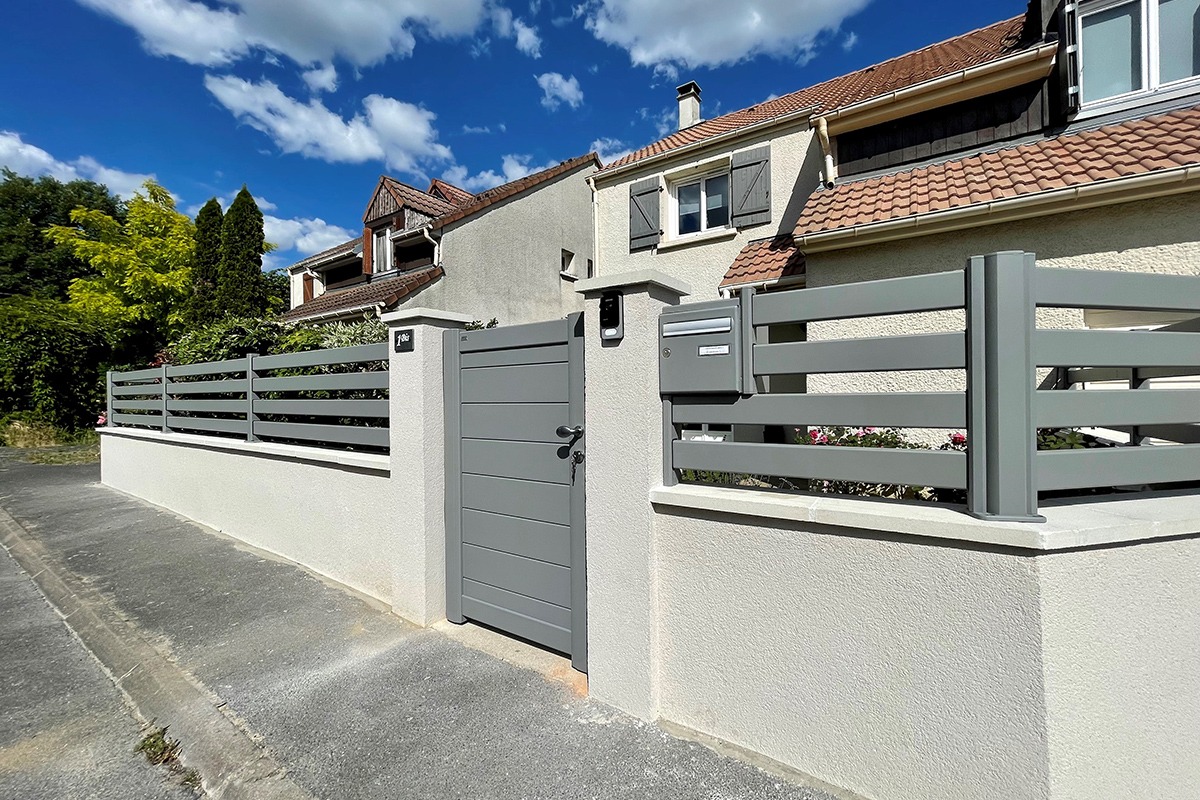 Côté pose, la clôture Mistral 100 s’installe sur muret ou entre poteaux, avec gestion des pentes pour une ligne régulière. Les accessoires assurent une finition propre et une tenue durable. Mistral 100 coche les attentes des projets résidentiels qui veulent un détail signature sans renoncer à la légèreté visuelle.