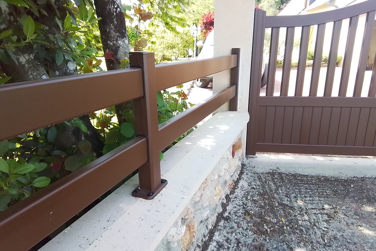 Conçue en aluminium, la clôture conjugue rigidité, anticorrosion et entretien minimal. Elle convient aux zones humides ou salines comme aux climats continentaux. Un rinçage périodique préserve la finition.