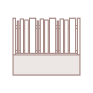- Structure : 6 modules disponibles : 280 mm (1 répétitions de 3 lames), 560 mm (2 répétitions de 3 lames), 840 mm (3 répétitions de 3 lames), 1120 mm (4 répétitions de 3 lames), 1400 mm (5 répétitions de 3 lames) et 1680 mm (6 répétitions de 3 lames). Accessoires : entretoise alu laquée, chapeau de profils verticaux alu, chapeau de socle alu laqué, fixations fournies (tirefonds et chevilles). Lame posé sur un socle et fixé avec un capot.