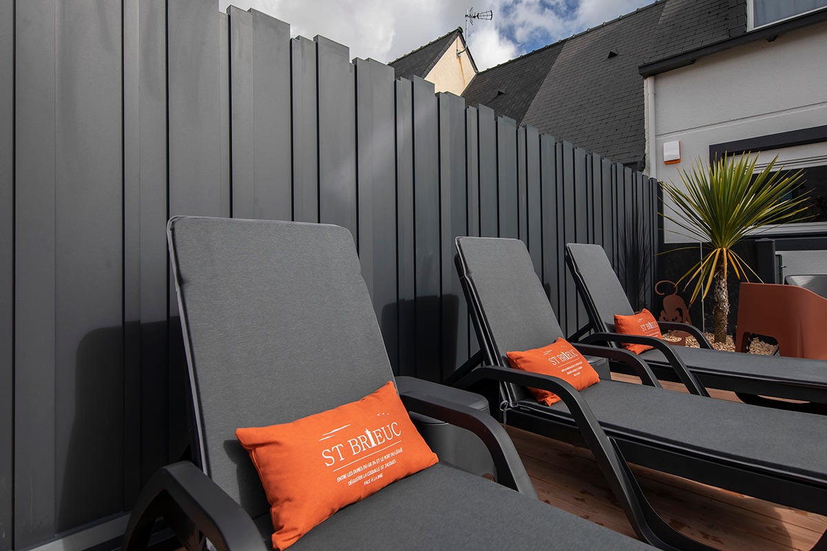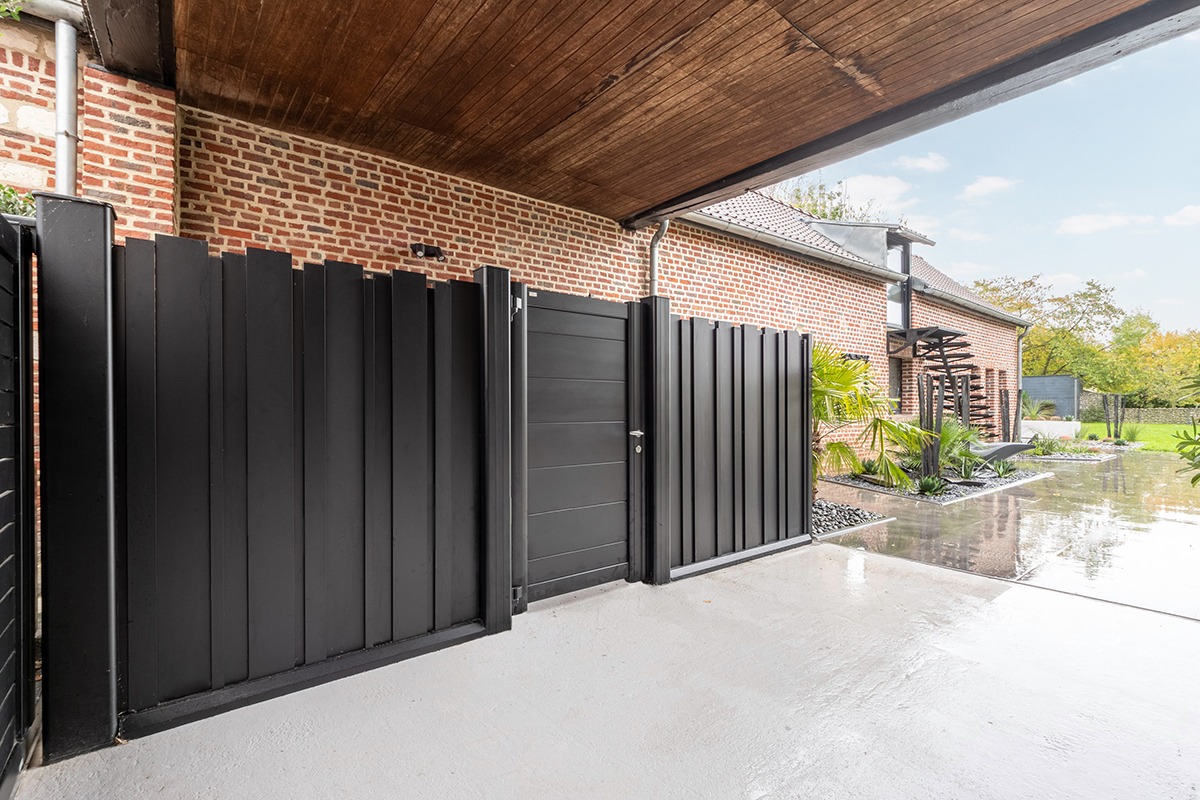 Avec le brise-vue aluminium Graphic, vous structurez et sécurisez l’extérieur sans l’alourdir. Le principe : des lames de 40, 80 et 160 mm fixées en applique qui créent un relief subtil, comme une réinterprétation des palissades en bois. Cette écriture verticale apporte du rythme au jardin, casse la monotonie et signe une façade contemporaine qui reste lisible dans le temps.