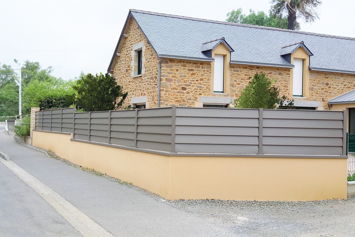 La conception aluminium garantit anticorrosion et entretien restreint. L’assemblage lame par lame autorise des ajustements de largeur et facilite les raccords sur terrain en pente. Pour personnaliser le rendu, il est possible d’insérer des décors en découpe laser sur un ou plusieurs panneaux : une manière de casser la monotonie d’un long linéaire et d’apporter une touche graphique en rappel des portails/clôtures décorés.