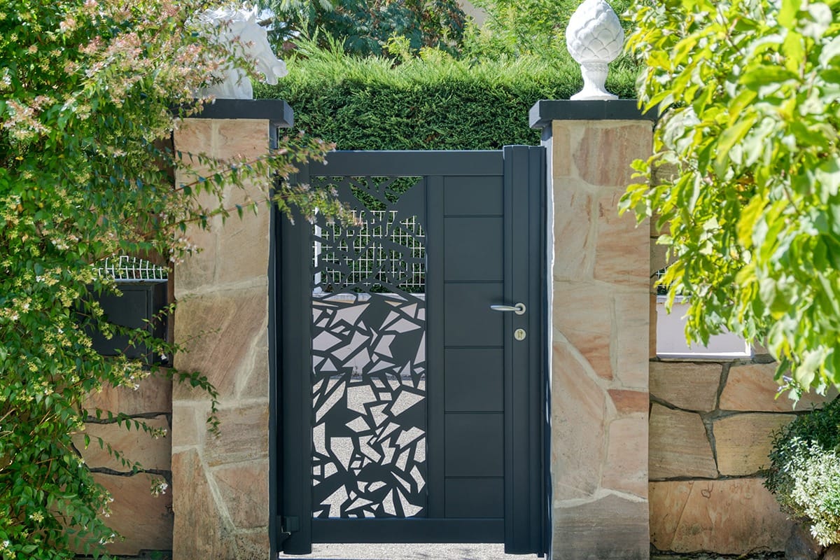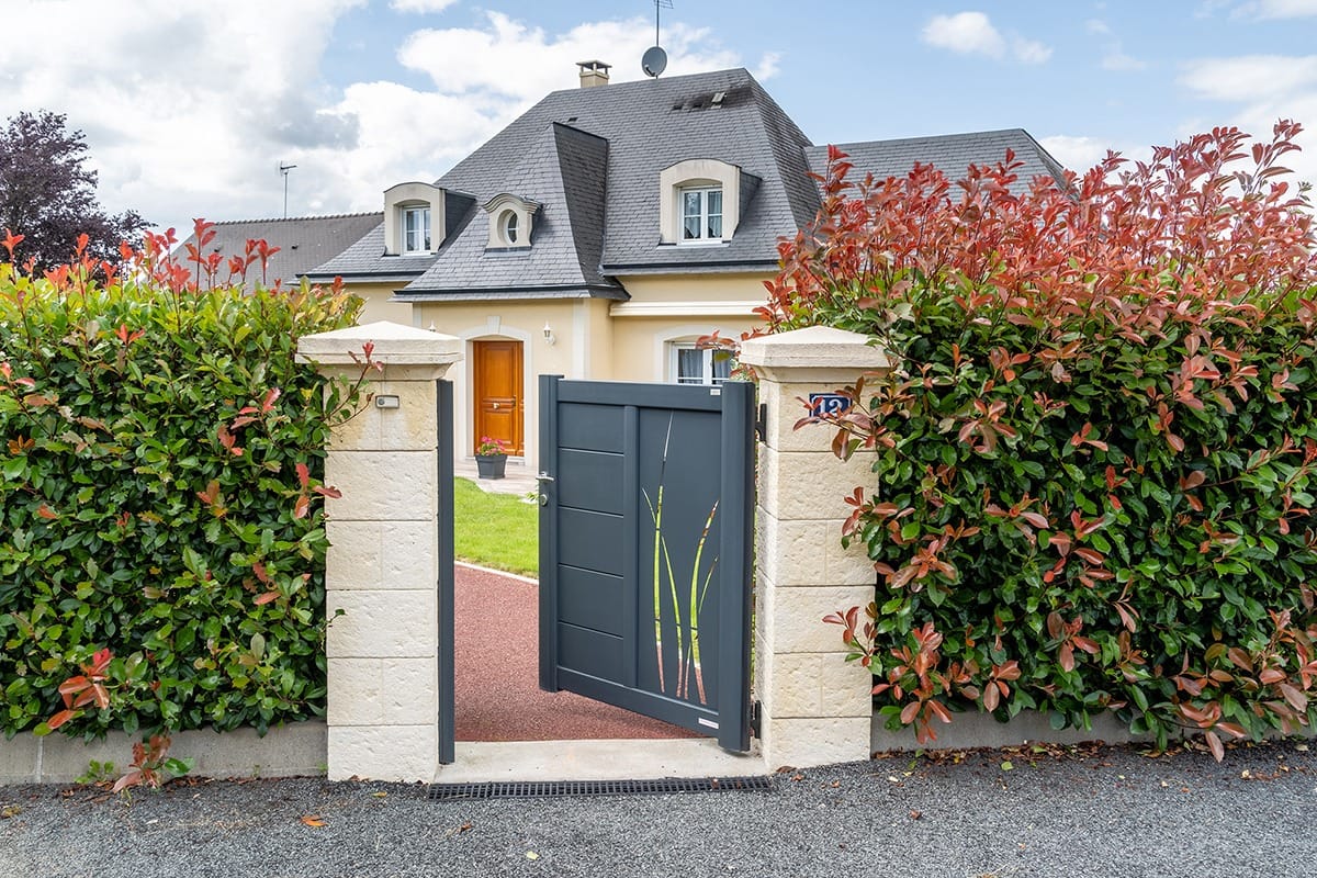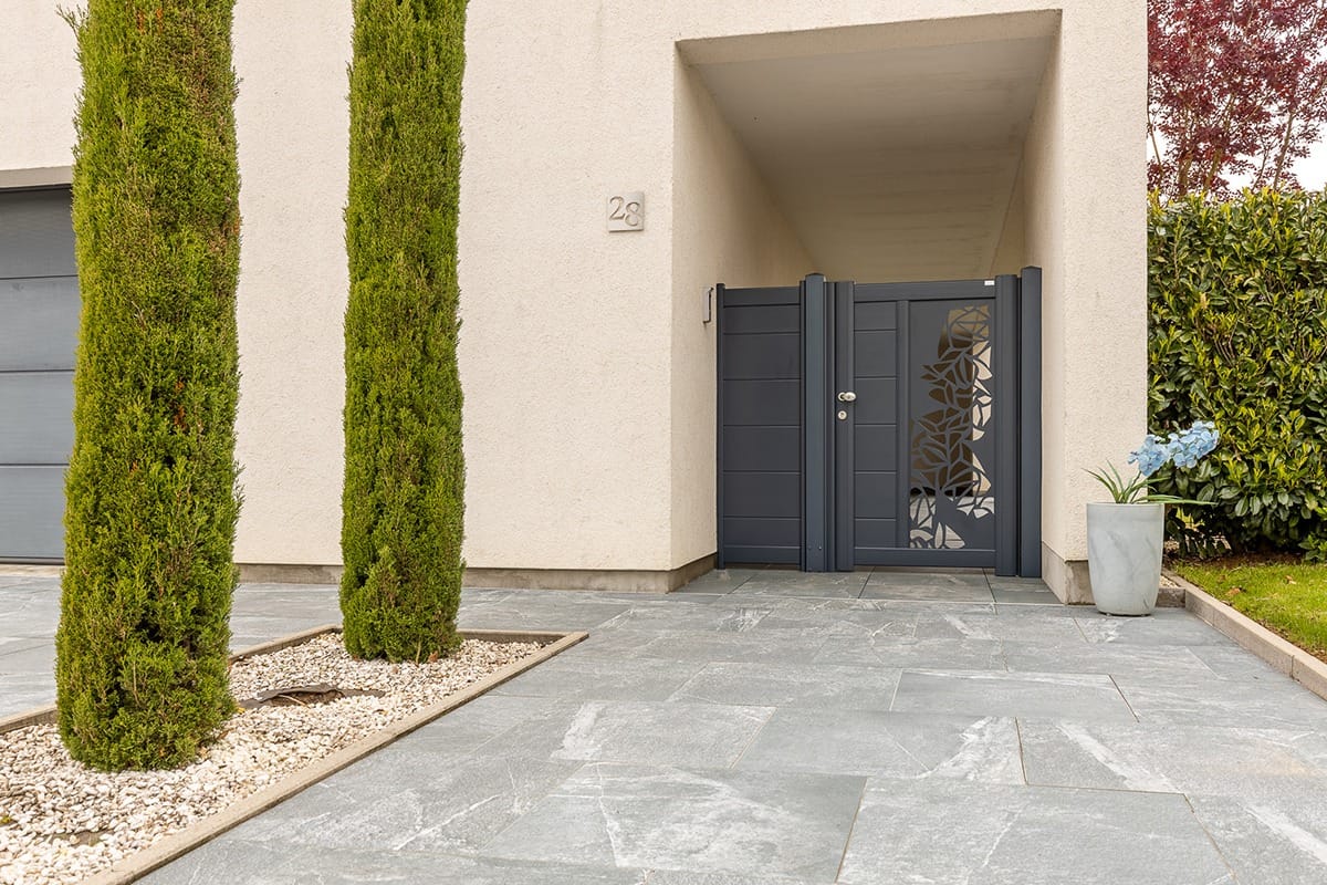 Le portillon Arial complète parfaitement les fermetures de la gamme SIGNATURE. Ce modèle plein est fabriqué en aluminium thermolaqué pour une durabilité optimale. Il se caractérise par deux zones décoratives personnalisables situées à gauche et à droite du vantail, permettant de créer une signature visuelle en harmonie avec le portail associé. Le remplissage est proposé en lames horizontales ou verticales de 255 mm, 170 mm ou brise-vent.