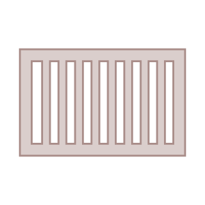Traverse haute à 130 mm du haut du montant. Oreille de gond profilée. - Remplissage : lames de 40, 80 et 160 mm.