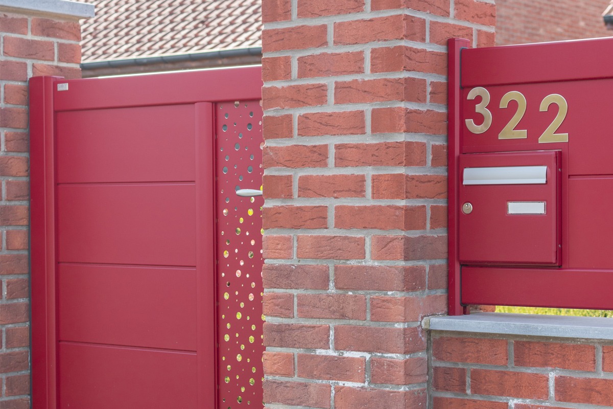Le portillon Aster est le complément piéton parfait du portail de la même gamme. Il est doté d’un remplissage plein avec une zone décorative personnalisable sur le côté gauche. Disponible en lames aluminium thermolaqué, horizontales ou verticales, 170 mm, 255 mm ou brise-vent. Il assure une entrée harmonieuse, sécurisée et durable. Idéal pour un accès quotidien coordonné à l’ensemble de la clôture.