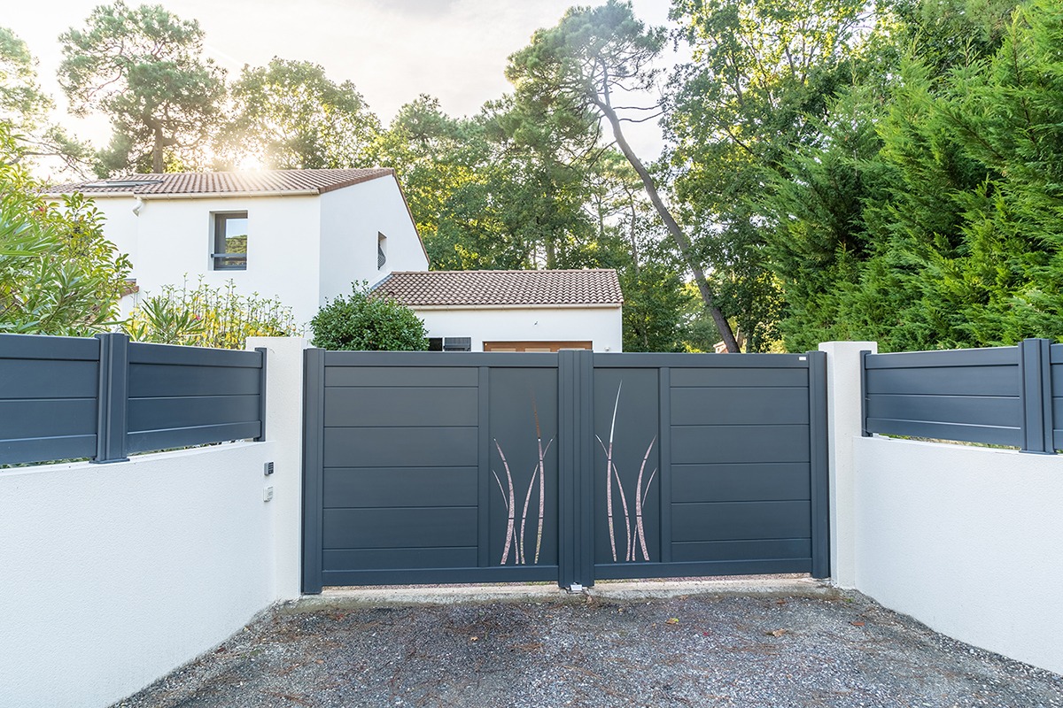 Garde-corps Givry décor herbage, portail battant Signature Aster 255 et clôtures Signature Origin CL 255 avec décor herbage – Loire-Atlantique (44)
