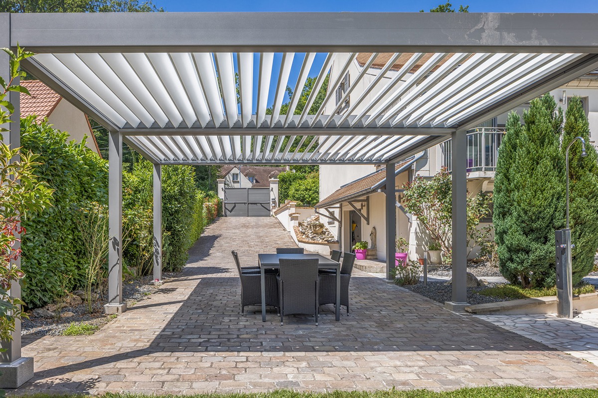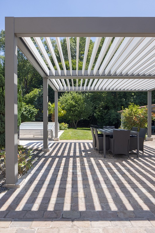 Pergola bioclimatique autoportée : fusion avec son environnement