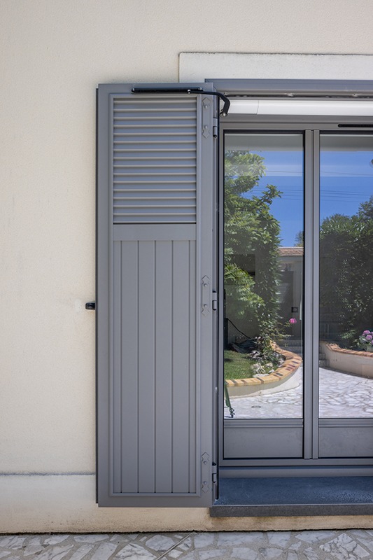 Située près de la maison, la pergola bioclimatique établit une connexion avec l’espace intérieur, renforcé par la végétation environnante. Les plantes grimpantes créent une atmosphère champêtre enchantant le lieu.