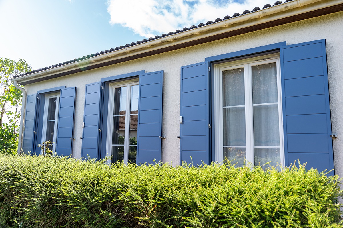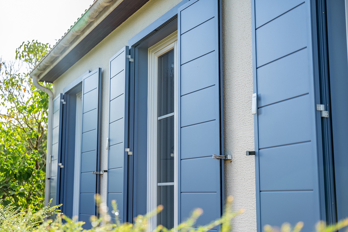 Le volet battant alu Quadra 255H assume une hauteur de lames de 255 mm pour un effet « bandeau » marqué : trame large, ombres profondes, présence architecturale forte. Structure tout aluminium, panneaux 30 mm isolants, finitions inox et crémone Invistyle© invisible pour une façade impeccable sans espagnolette. En version précadre, la motorisation – y compris solaire – reste quasi invisible, bras laqués à la teinte. 23 couleurs. Des volets battant robustes, des volets battants alu faciles d’entretien et des volets modernes alu à l’impact visuel assumé.